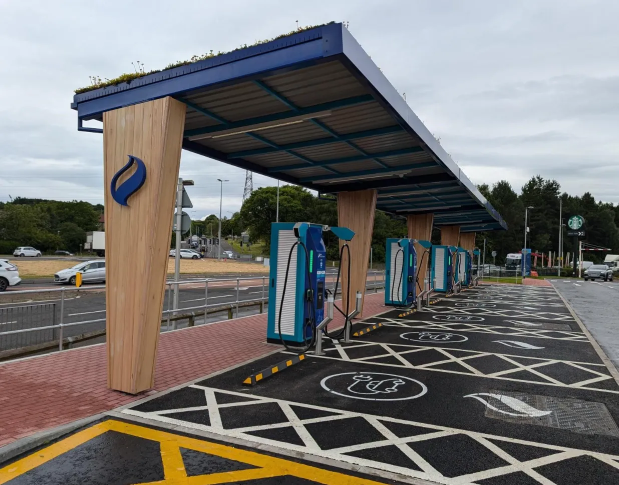 The charging equipment immediately catches the eye, featuring a technical building and a bridge construction. All 41 Flex chargers, and the transfer station for the medium-voltage system, are located within the technical building. A steel frame spans across the six bus lanes, upon which depot boxes are mounted, allowing for more vehicles to be charged in a smaller space.