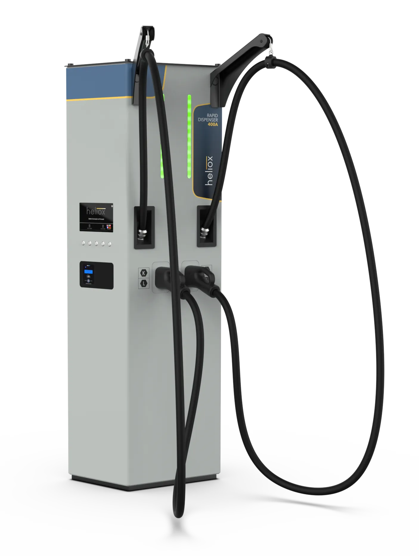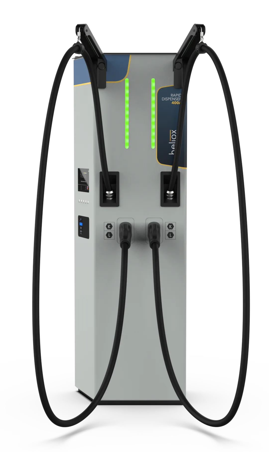 The Heliox Rapid 400 A dispenser column is a robust free-standing charging solution specifically designed for high-traffic charging hubs and forecourts.